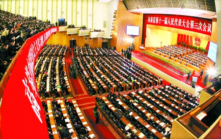 1月25日,河南省第十一屆人民代表大會第三次會議在省人民會堂隆重開幕。本報記者 郭宇 李建峰 攝