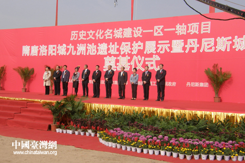 中國臺灣網(wǎng)10月26日洛陽消息 10月25日上午,隋唐洛陽城“一區(qū)一軸”區(qū)域內(nèi)重要文物保護展示工程——隋唐洛陽城九洲池遺址保護展示暨丹尼斯城市廣場項目舉行奠基儀式。河南省委常委、洛陽市委書記毛萬春出席并宣布項目開工。洛陽市領(lǐng)導(dǎo)吳中陽、陳向平、黃元元、譚建忠、王敬林、陳衛(wèi)平及丹尼斯集團董事長王任生等出席奠基儀式。