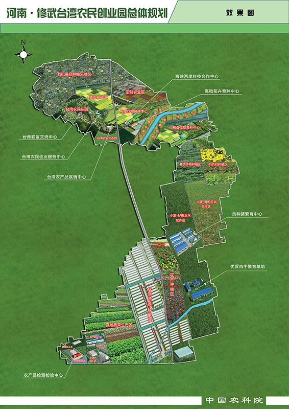 河南焦作修武臺灣農民創業園2011年6月8日經國臺辦和農業部批復成立,是河南省唯一一家臺灣農民創業園,于2012年11月被列入中原經濟區規劃,上升為國家戰略。園區位于修武縣城北部,北臨云臺山風景區、東連新鄉市獲嘉縣、南至修武縣城、西通焦作市區,規劃總面積11.07萬畝,輻射城關鎮、七賢鎮、五里源鄉三個鄉鎮41個行政村,人口4.5萬人。由中國農科院編制的臺創園總體規劃,于2012年6月在北京通過專家論證。自臺創園批復成立以來,省、市、縣高度重視,充分利用臺創園得天獨厚的交通區位優勢、臨近云臺山景區的旅游資源優勢和農業高產優勢,強力拓展臺灣精致農業理念,加快農業與旅游業融合發展。截止目前,已有25家重點企業入駐園區,初步形成了生態休閑觀光農業產業、花卉苗木種植產業、果品蔬菜種植產業、畜牧養殖加工產業等四大主導產業體系。