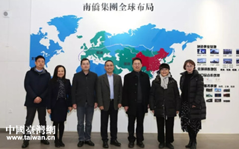 3月5日,武漢市臺辦副主任張強(右3)、武漢臺資企業協會會長蕭永瑞(右2)一行考察南僑集團。(圖片來源:武漢市臺辦)