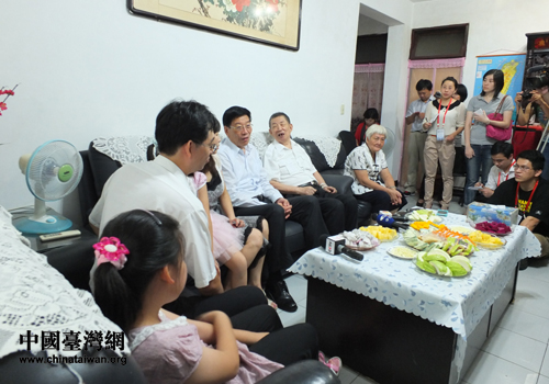 徐守盛一一與他們握手致意,當看到張宏芳兩個乖巧的女兒,一向喜愛孩子的徐守盛不禁將兩個小朋友攬在懷中,并給孩子送上了可愛的湖南動漫卡通玩偶。如同普通家庭女兒的父親拜訪親家一樣,徐守盛與張宏芳的公公陸廷訓和婆婆郭淑緣拉起了家常。徐守盛說,張宏芳是湖南的妹子,遠離家鄉(xiāng)嫁到臺灣,給兩位老人家當兒媳,成為了臺灣媳婦,二老給了宏芳很好的照顧,謝謝兩位老人家。
