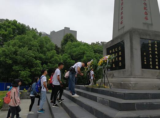 師生們向紀念塔進獻鮮花