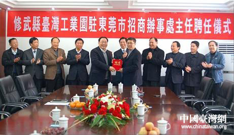 焦作市修武縣臺灣工業(yè)園駐東莞市招商辦事處主任聘任儀式日前舉行。圖片來源:焦作市臺辦