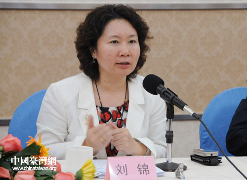 海南省臺辦副主任劉錦主持座談會。(海南省臺辦 唐小平攝)