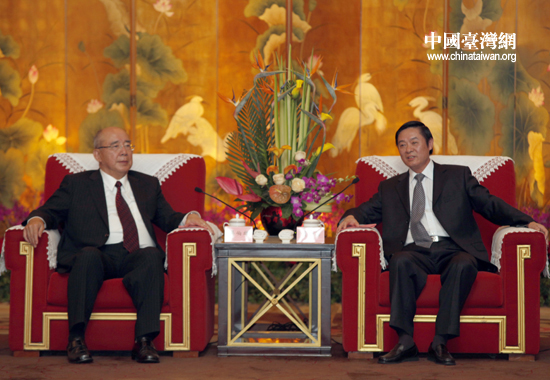 5月8日下午,中共四川省委書記劉奇葆在成都會見中國國民黨榮譽主席吳伯雄和參加第七屆兩岸經貿文化論壇的部分臺灣代表。 (中國臺灣網 田云鵬 攝)
