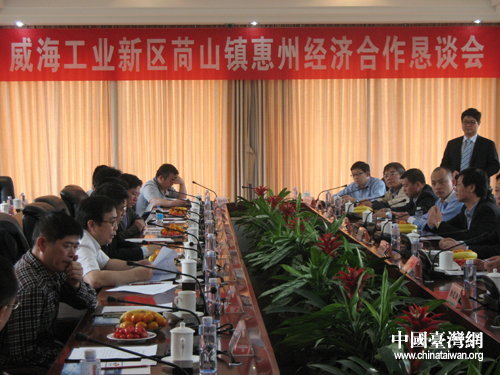 威海工業新區苘山鎮惠州經濟合作懇談會現場(圖片來源:威海臺辦)