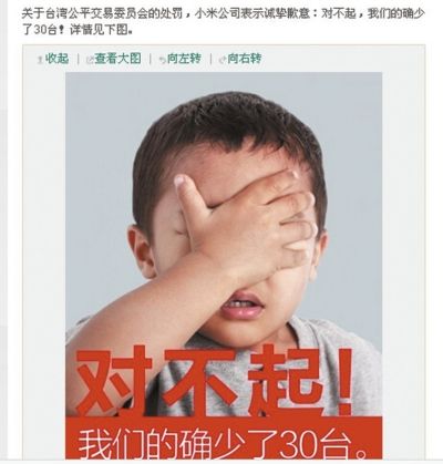 昨天,小米就此作出回應(yīng)。小米在其官微貼出一個(gè)賣萌的圖像并表示:“對不起,我們的確少了30臺(tái)。”小米稱臺(tái)灣公司在前三輪開放購買網(wǎng)上公告總計(jì)28000臺(tái),而實(shí)際網(wǎng)上搶購資格和發(fā)放F碼共計(jì)27970臺(tái)(9339+9492+7389+1750),確實(shí)比公告數(shù)少了30臺(tái)。隨后,臺(tái)灣小米公司也發(fā)出致歉聲明,并承諾修正開放購買機(jī)制。