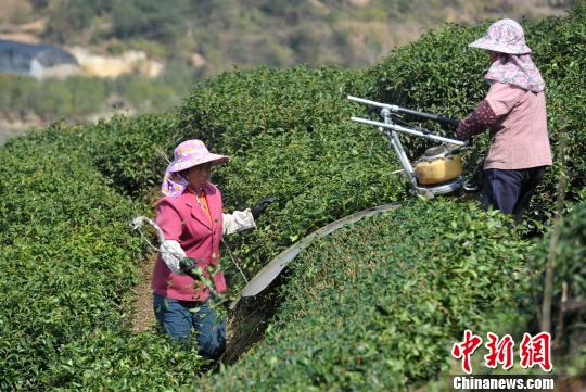 圖為鴻鼎的茶葉生產(chǎn)基地,工人忙著剪枝。 張斌 攝