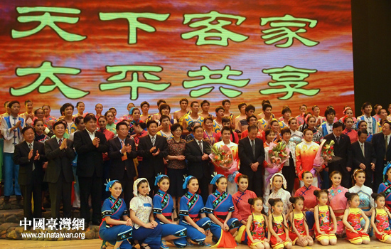 參加第四屆海峽兩岸客家高峰論壇的嘉賓與演職人員合影。(中國臺灣網 張弛 攝)