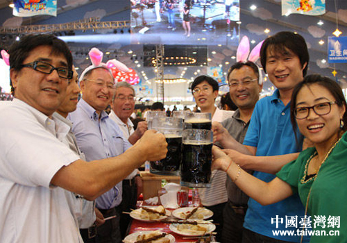 中國臺灣網8月8日大連消息 日前,在第十五屆大連國際啤酒節上,臺灣金色三麥啤酒公司與北京、上海兩家企業合作,精釀新的啤酒品種——夢蝶小麥在現場銷售,受到消費者的熱捧。
