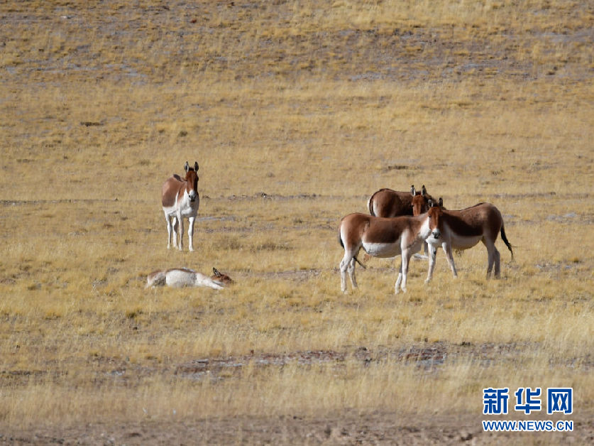 這是10月30日在青海省果洛藏族自治州瑪多縣境內拍攝的一群藏野驢。新華社記者 張龍 攝