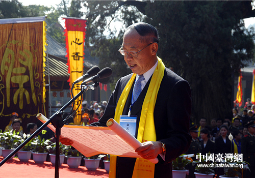 臺灣太平洋文化基金會董事長錢復恭讀祭文。(圖片來源:陜西省臺辦)