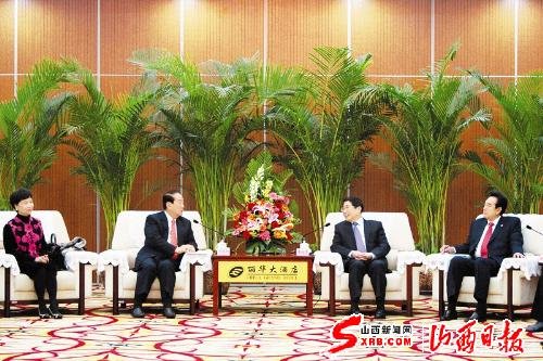 袁純清代表中共山西省委、省政府和3400萬山西人民,對宋楚瑜一行來山西參訪表示誠摯歡迎,對宋楚瑜多年來為兩岸關系發(fā)展所作的貢獻表示欽佩,并向宋楚瑜一行介紹了山西省情特點和經(jīng)濟社會發(fā)展情況。他說,2005年5月,宋主席的大陸溝通之旅,對推動兩岸關系和平穩(wěn)定發(fā)展,產(chǎn)生了重要影響。宋主席長期以來堅持“一個中國”,致力于兩岸關系和平發(fā)展,積極推動兩岸交流,令人贊賞和敬佩,相信宋主席此次來山西參訪,將為晉臺交流合作開辟新的篇章。他指出,五千年文明看山西,山西是中華民族重要發(fā)祥地之一,“地上”人文資源首屈一指,民族文化遺產(chǎn)豐厚,華夏民族的始祖黃帝和炎帝都曾在山西活動,堯舜禹均建都山西,現(xiàn)存宋、遼、金以前地面古建筑占大陸的70%以上,國家重點文物保護單位居全國之首。中原農耕文明和北方游牧文明在山西交匯,佛教文化、民俗文化、大院文化、根祖文化交相輝映,從中感受到中華文明的燦爛輝煌。山西“地下”資源十分豐富,煤炭儲量占到全國儲量的1/4,60多年來產(chǎn)煤120億噸,外調90億噸,占省際外調煤炭的70%,為大陸經(jīng)濟發(fā)展作出了重要貢獻。近年來,山西經(jīng)濟持續(xù)快速發(fā)展,新興產(chǎn)業(yè)加快壯大,綜合實力不斷增強,社會事業(yè)全面進步,人民生活水平顯著提高,三晉大地煥發(fā)出勃勃生機。特別是我們堅持以科學發(fā)展觀為指導,抓住國家把山西確定為資源型經(jīng)濟轉型綜合配套改革試驗區(qū)的難得機遇,以轉型跨越發(fā)展為主線,以煤為基、多元發(fā)展,推進煤炭資源整合和企業(yè)兼并重組,做好地上地下兩篇文章,促進煤與非煤產(chǎn)業(yè)協(xié)調發(fā)展,努力在“十二五”期間再造一個新山西。