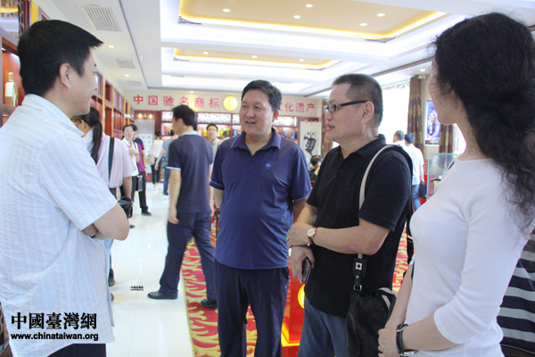 汾陽王酒業有限公司董事長王再武向臺灣記者介紹企業發展情況。(中國臺灣網 楊永青 攝)