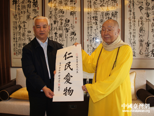 中國臺灣網4月5日南投消息  4月3日,四川省政協主席陶武先前往位于臺灣南投縣的佛教名剎中臺禪寺參訪,拜訪中臺禪寺開山方丈惟覺法師。