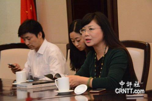 成都武侯祠博物館副館長何紅英向中評社四川走親采訪團簡報博物館 的發展營運概況(中評社 趙家麟攝)