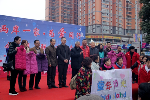 中國臺灣網12月30日綿陽訊 12月24日,綿陽大潤發超市門前的長虹國際廣場上人頭攢動,熱鬧非凡,由綿陽市臺辦指導,綿陽市臺商協會主辦,綿陽市臺胞臺屬聯誼會、微愛陽光義工聯兒童希望基金會協辦的“兩岸一家·為愛同行”主題公益聯歡活動在此舉行。活動參與者近百人,觀看民眾達千人。