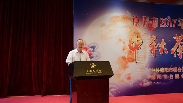 中國臺灣網9月30日德陽訊 9月27日,德陽市臺辦、市臺聯會共同舉辦全市臺胞臺屬2017年中秋茶話會,德陽臺胞臺屬代表及縣級臺辦主任、相關部門負責人等100余人參加活動,喜迎佳節、暢敘親情、共話團圓、共同展望美好明天。德陽市委副書記何禮、市人大民宗外僑工委副主任王曉、市政協聯誼委副主任鄧釗、市臺辦主任劉忠順、市工商局副局長耿軍等出席茶話會。