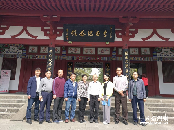 中國國民黨前副主席林政則一行在李白紀(jì)念館合影留念。(圖片來源:江油市臺辦)