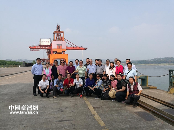 考察團(tuán)一行在瀘州港合影留念。(圖片來源:瀘州市臺辦)