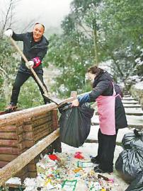 而一周之前的元旦假期,這種情況更加嚴重。“當天我們上山的時候是上午10點,山上到處是垃圾,幾乎每一級臺階都有!”回憶當日的九峰山旅游經(jīng)歷,成都游客曹女士稱很不愉快:所有垃圾桶全部爆滿,還有很多垃圾溢出來散落在周圍,上山棧道內(nèi)外都是成堆的垃圾,把美麗的雪景覆蓋了。盡管所有垃圾桶都滿滿當當,但沒有看到有保潔員清理垃圾。