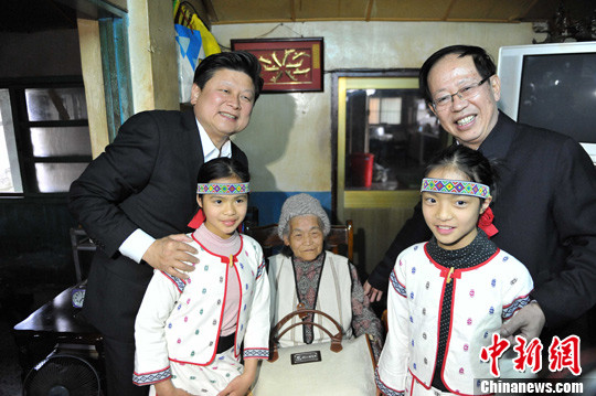 2月22日,廣西壯族自治區(qū)黨委副書記危朝安一行深入臺灣花蓮基層民眾家中和田間地頭,與他們敘親情、談友誼,共同探討農業(yè)生產發(fā)展之路。在萬榮鄉(xiāng)萬榮村,危朝安看望了80歲村民彭記妹,向她贈送了慰問品。圖為危朝安(右)、花蓮縣縣長傅崐萁與老人及老人孫女合影。中新社發(fā) 蔣雪林