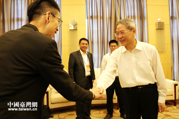 7月18日上午,全國人大常委會(huì)委員、海協(xié)會(huì)會(huì)長張志軍會(huì)見參加第三屆海峽兩岸青年東湖論壇的臺(tái)灣青年代表。(中國臺(tái)灣網(wǎng) 趙苗青 攝)