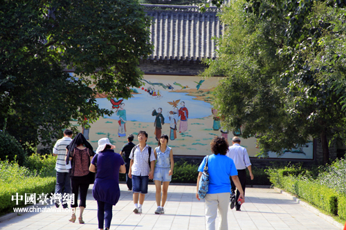 2012年海外臺商齊魯行活動2日上午在山東濰坊繼續進行,海外臺商參觀楊家埠民俗藝術大觀園后合影。(中國臺灣網 楊麗 攝)