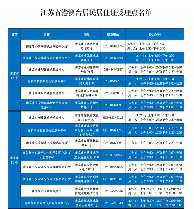 江蘇省首批開通的135個受理點,本著“就近、便利”的原則設置,保證每個區、縣(市)至少設置1個,蘇州昆山等港澳臺居民較多的地方均有所增設。受理點設置在政務服務中心的47個、公安辦證大廳的21個、公安派出所的67個。下一步,全省還將根據工作需要逐步增加受理點數量。