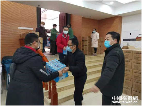 1月31日,懷化市臺企臺胞向一線工作人員捐獻口罩。 (中國臺灣網 發)