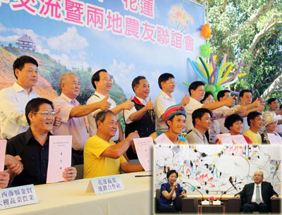 25日,廣西與臺灣花蓮農產品貿易對接會暨啟運儀式在花蓮農業職業技術學校舉行。25日,廣西政協主席陳際瓦在臺灣花蓮出席廣西與花蓮農業合作交流,見證兩地多個蔬果產銷班簽署對口交流備忘錄。