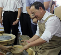 鹿心社向陶瓷藝人請教“拉坯”技術(shù)