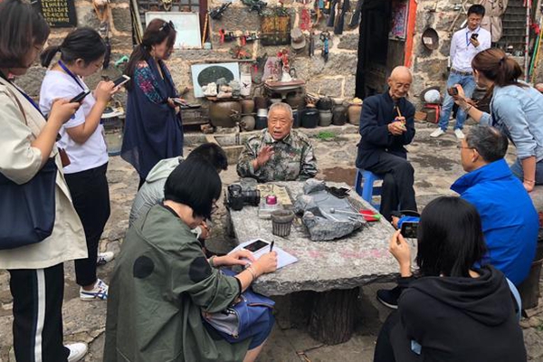走進(jìn)郭亮村,石街、石道、石房、石瓦處處流露出古典之美,村落內(nèi)游客絡(luò)繹不絕。兩岸記者感嘆,在懸崖之上竟有如此村落,紛紛拿出攝像儀器記錄著在郭亮村的每一個瞬間。