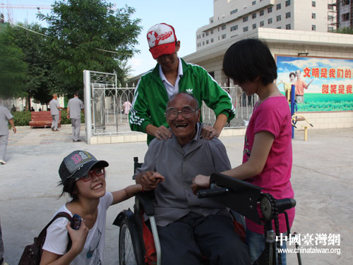 與福利院老人在一起。(中國臺灣網 宿靜 攝)