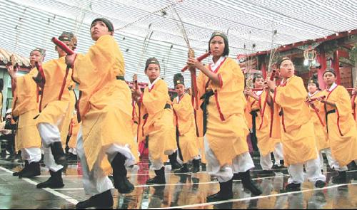 中新網9月28日電 據臺灣《聯合報》報道,南投縣各界紀念大成至圣先師孔子2559周年誕辰釋奠大典,27日上午在埔里鎮昭平宮育化堂孔廟舉行,特別的是,擔綱六佾舞“佾舞生”的育英小學首開縣內先例,36名佾舞生中,小學六年級女生就占了19位。