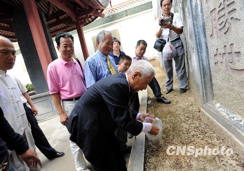 王珠慶在閩王祠內(nèi)乞土勝地碑前取土。中新社發(fā) 劉可耕 攝