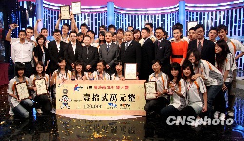 10月26日,由臺灣的政治大學、中山大學,大陸的北京大學、廈門大學四所高校組成的“獅隊”,在第八屆“海峽兩岸知識大賽”上獲得最后的勝利,除了抱走最高殊榮“精神總錦標”大獎外,更贏得了大賽十二萬元新臺幣獎金。由臺灣中天電視和大陸的中央電視臺共同舉辦的“海峽兩岸知識大賽”已經邁入第八屆。 中新社發 中天 攝