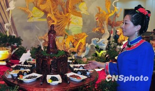 11月2日晚,“媽祖宴”獻(xiàn)禮“兩岸千人頌媽祖”活動(dòng)信眾,其精致程度讓海內(nèi)外信眾嘆為觀止。宴菜結(jié)合媽祖?zhèn)髡f(shuō)、典故、封號(hào)和祥瑞之語(yǔ)等進(jìn)行命名,以期感悟文化中得平安。“媽祖宴”在今年10月獲得第四屆搜廚國(guó)際烹飪大賽團(tuán)體金獎(jiǎng)。圖為“媽祖宴”最新菜式“恩澤寰宇”。 中新社發(fā) 張麗君 攝