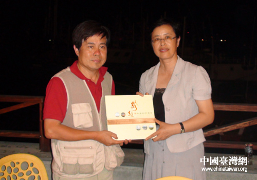 桃園縣攝影藝術協會理事長高源彬與舟山市臺辦主任互贈禮品(圖片來源:舟山市臺辦)