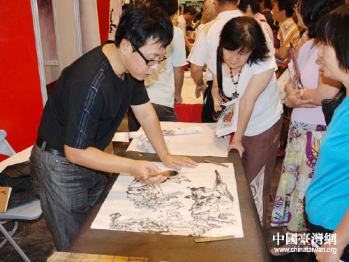 河北省知名畫家王立明現(xiàn)場(chǎng)作畫。(圖片來(lái)源:河北省臺(tái)辦)
