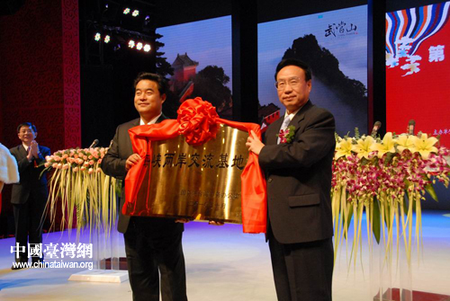 授牌儀式上,李亞飛向武當山特區工委書記、管委會主任李發平授于“武當山海峽兩岸交流基地”的牌匾。這是繼山東省棗莊市臺兒莊之后全國第二個“兩岸交流基地”。隨后,在武當山進山大門口,中共中央臺辦、國務院臺辦主任助理、海協會執行副會長李亞飛和湖北省副省長田承忠為海峽兩岸交流基地揭牌。