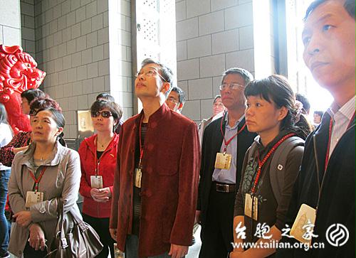 礙于篇幅筆者不想一一描述參觀的細(xì)節(jié),只記錄兩點(diǎn)作家的共同感受:感受一,原來(lái)寺廟還可以是這樣的!此話怎講?中臺(tái)禪寺帶給作家的絕不僅僅是宏偉壯觀產(chǎn)生的震撼,也不僅僅是工匠鬼斧神工的機(jī)巧,最重要的還是它傳統(tǒng)宗教與現(xiàn)代社會(huì)的有機(jī)融合。社會(huì)在發(fā)展,世界在進(jìn)步,傳統(tǒng)古老的宗教如何跟上時(shí)代的腳步,中臺(tái)禪寺提供了一個(gè)成功的范例;感受二,接受了一次絕對(duì)是貴賓級(jí)的待遇。由于夏潮和王導(dǎo)預(yù)先作了聯(lián)系,寺方特意派出一位女師傅為大陸作家講解。憑著一張通行證,我們看到了一般游客看不到得光明殿、萬(wàn)佛殿、藏經(jīng)閣,聆聽(tīng)了細(xì)致的解說(shuō)。若不是第五層有法事活動(dòng),我們幾乎看遍了所有的殿堂。憑這兩點(diǎn)共同的感受,大家回到車(chē)上,向夏潮和王導(dǎo)報(bào)以熱烈的掌聲就在情理之中了。