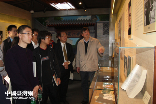中國臺灣網(wǎng)4月10日北京消息 昨天下午,來自清華大學(xué)、北京大學(xué)等多所高等院校的兩岸學(xué)子在北京市臺灣同胞聯(lián)誼會副會長鄭大的引領(lǐng)下,來到坐落于北京市前門地區(qū)的臺灣會館進行參觀學(xué)習(xí)。在主題為“中華魂·京臺情”京臺交流史展覽中,兩岸學(xué)子感受到了百余年來臺灣會館的歷史變遷、京臺交流的新篇章以及祖國人民對寶島同胞的深厚情誼。