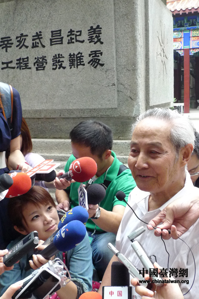 熊秉坤之子、85歲高齡的熊輝在工八營(yíng)舊址講述“辛亥革命第一槍”的歷史(中國(guó)臺(tái)灣網(wǎng) 李徽 攝)