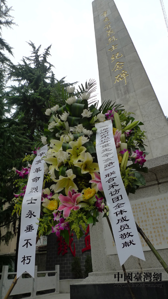 兩岸記者聯(lián)合采訪團(tuán)在辛亥革命烈士公墓向烈士敬獻(xiàn)花圈(中國(guó)臺(tái)灣網(wǎng) 李徽 攝)