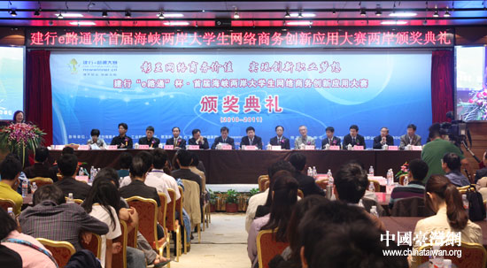 中國臺灣網9月20日北京消息 上午9點,建行“e路通”杯首屆海峽兩岸大學生網絡商務創新應用大賽兩岸總決賽頒獎典禮在北京臺灣會館隆重舉行。本次頒獎典禮由中國臺灣網和中國互聯網協會共同主辦。國臺辦主任助理龍明彪在頒獎典禮上致辭并為冠軍頒獎。國臺辦新聞局局長楊毅、信息中心主任仇開明、交流局副局長曲萌,中國互聯網協會秘書長馬寧,北京市臺辦副巡視員杜德平等有關方面領導和兩岸的高校、企業、大學生等共180人出席了頒獎典禮。大賽主辦方——中國臺灣網總經理總編輯劉曉輝主持了頒獎典禮。