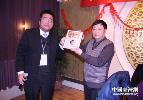 四川省人大常委會副主任、民革四川省委主委王宇坤(右一)在成都會見了來川參訪的臺灣“杰青團”一行。圖為參訪團團長陳長風(左一)向王宇坤副主任贈送紀念牌。(圖片來源:民革四川省委)