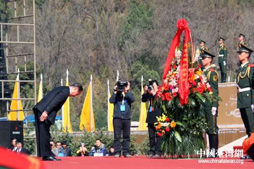 4日上午,海內(nèi)外一萬多名中華兒女代表在陜西黃陵滿懷虔誠的參加了公祭典禮,追念人文初祖功德,表達(dá)炎黃子孫追思,新黨主席郁慕明參加公祭并向始祖敬獻(xiàn)了花籃。