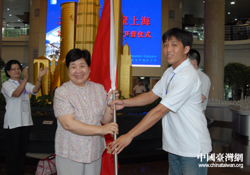 臺聯會長林明月向營員代表授旗。(上海市臺聯 朱征宇 攝)