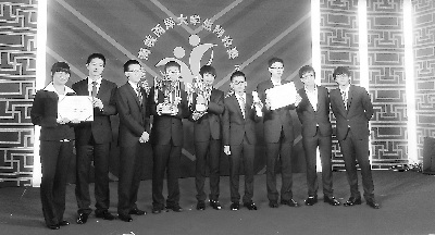 冠亞軍河海大學(xué)與臺灣世新大學(xué)同學(xué)在辯論賽現(xiàn)場留影慶祝。圖片來源:福建日報